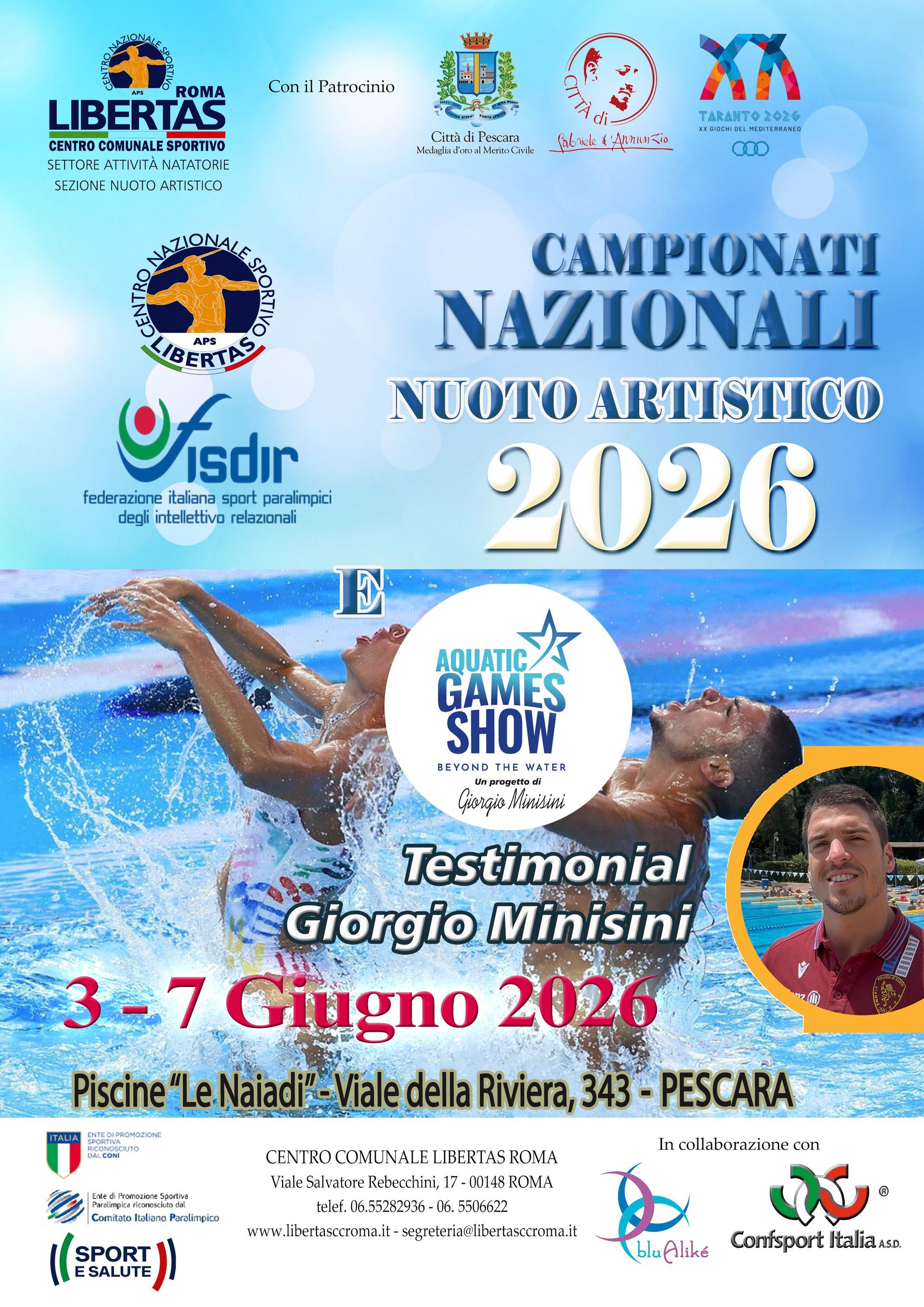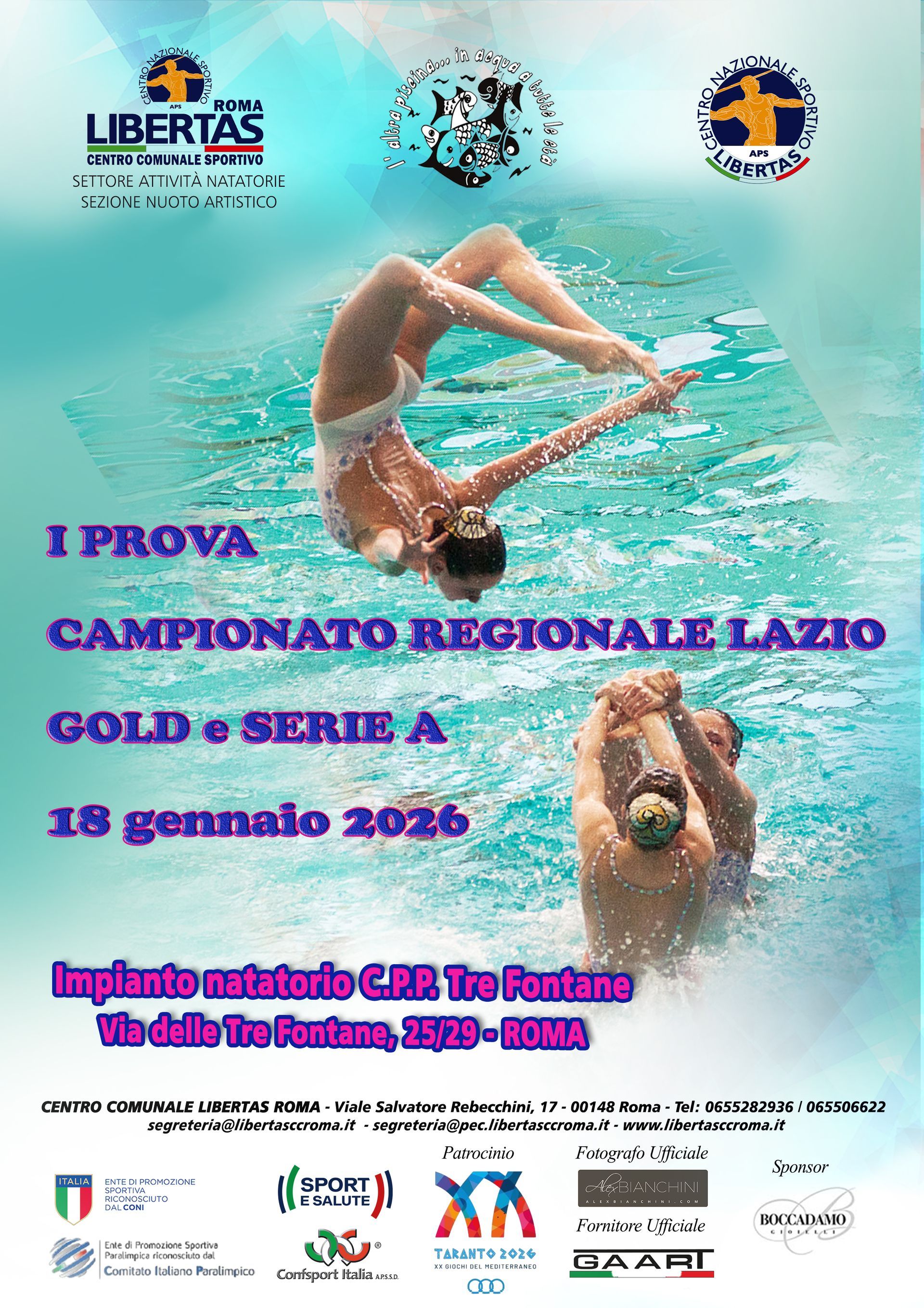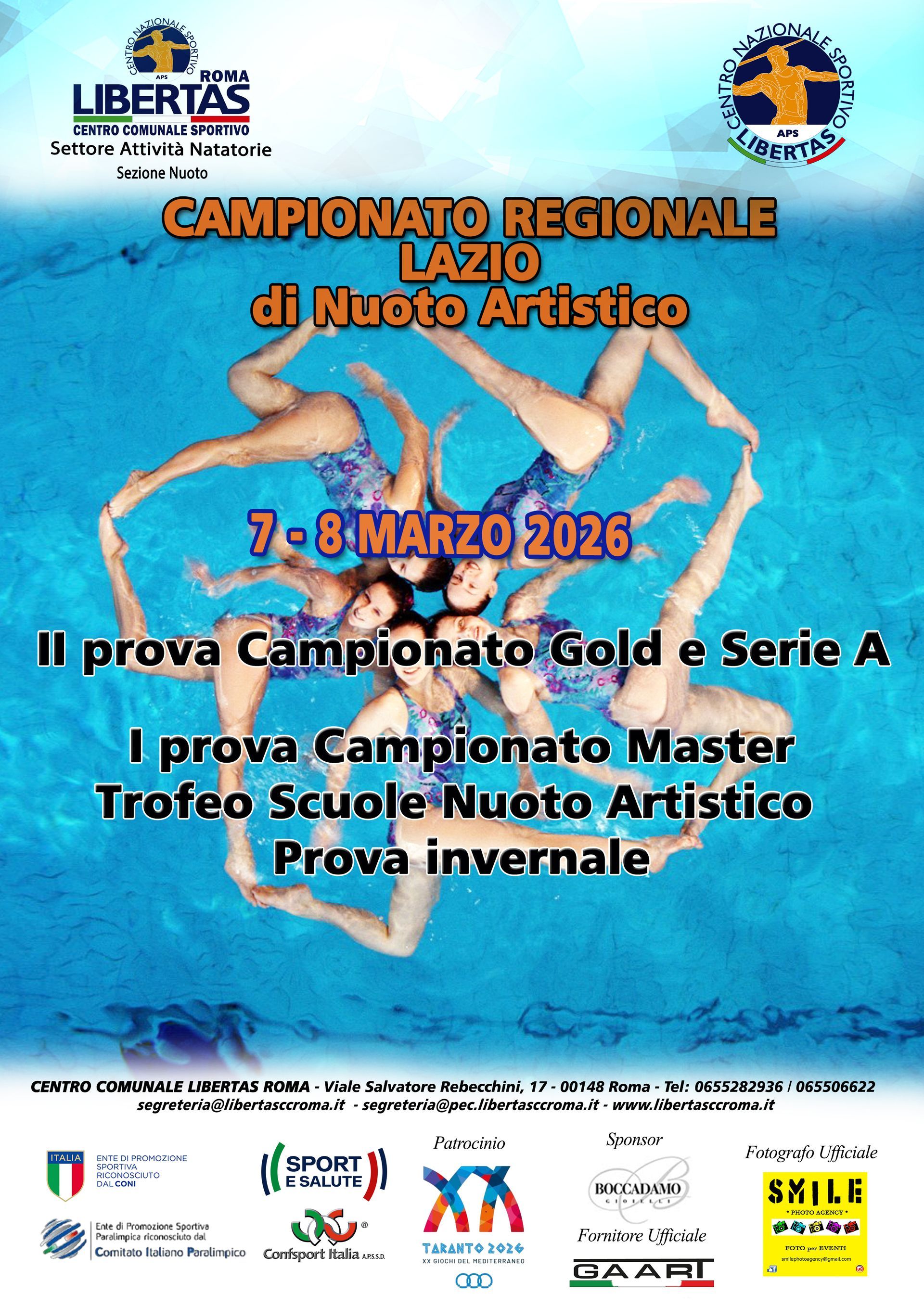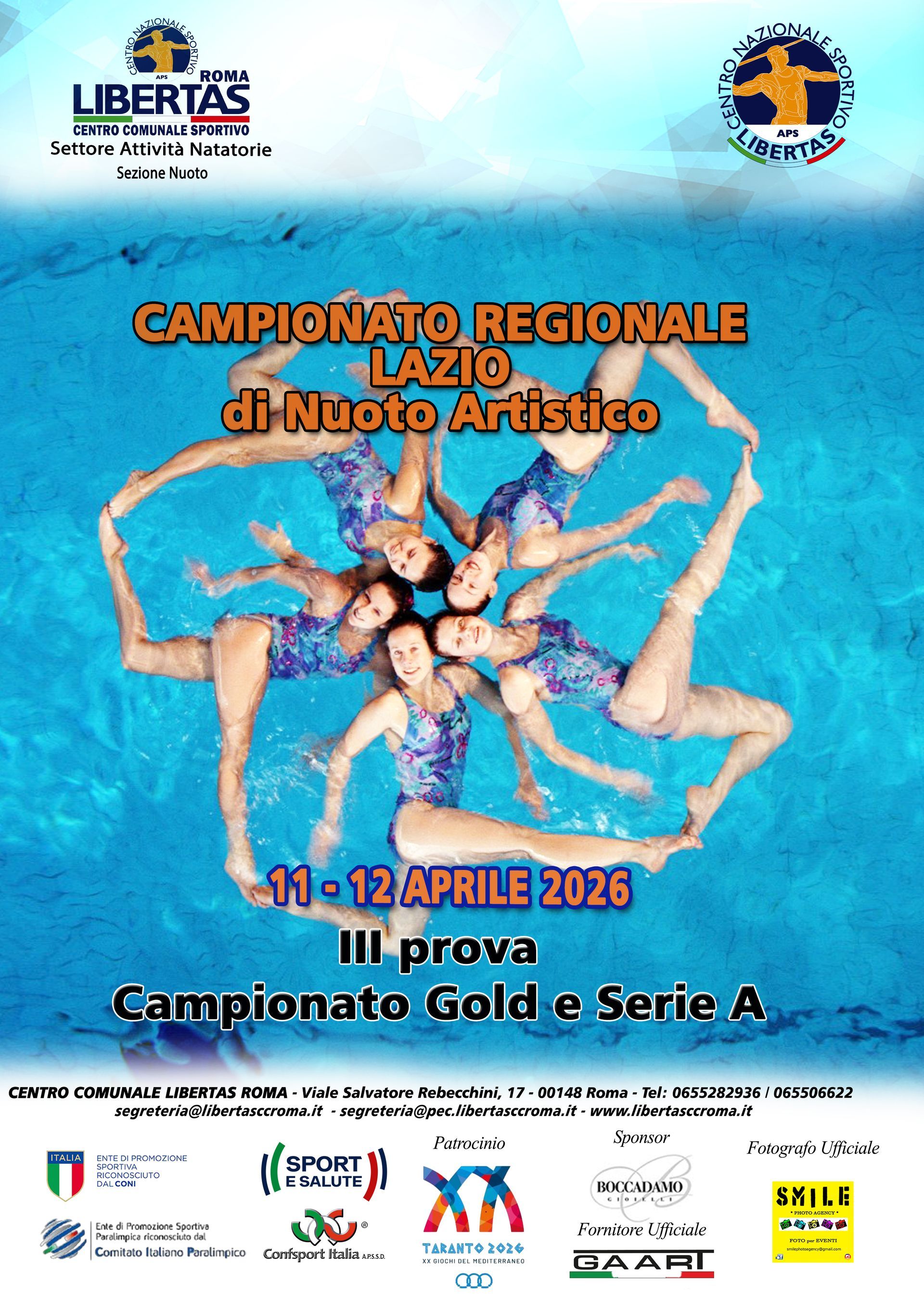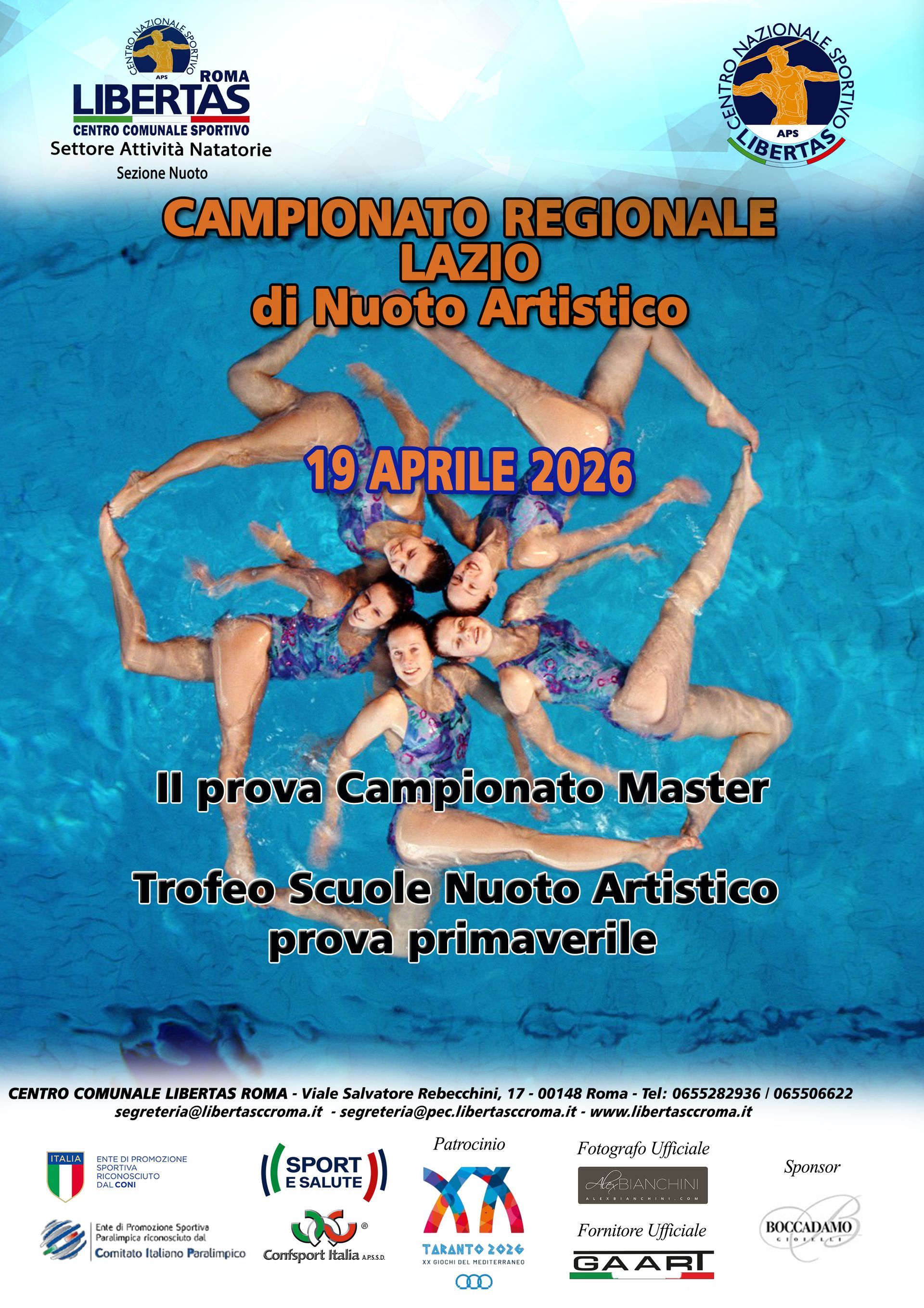 In questa pagina saranno pubblicate tutte le circolari e le classifiche degli eventi di Nuoto Artistico che si svolgono sul territorio nazionale organizzati dal C.C. Libertas Roma o da Associazioni ad esso collegate.